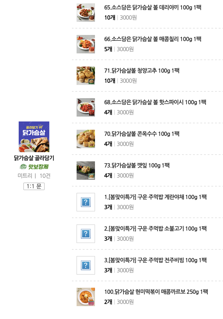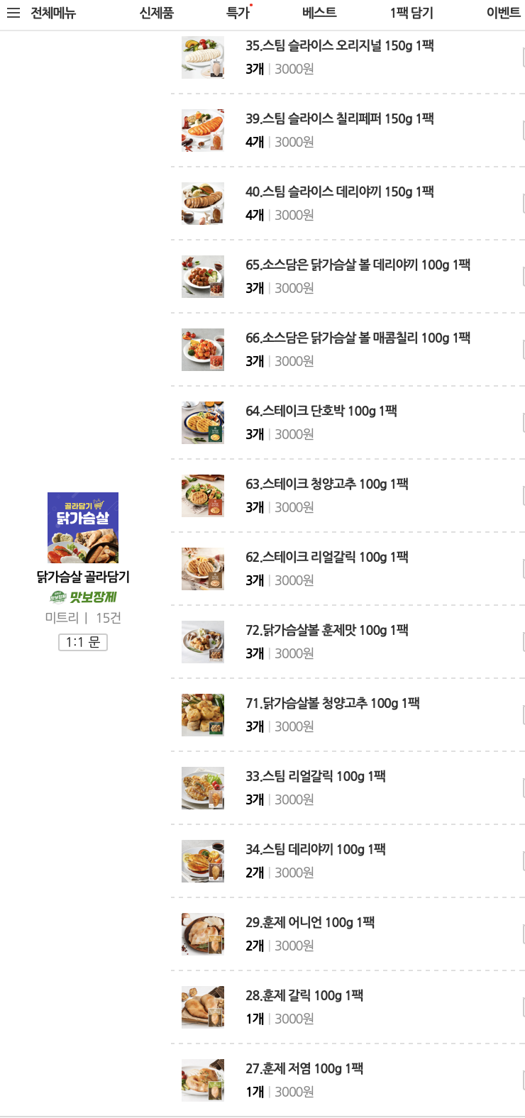 미트리에서 제 1위는 소스담은 닭가슴살볼 데리야끼입니다.