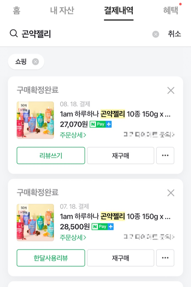 일단 제가 직접 내돈내산한 구매내역 공유합니다.
